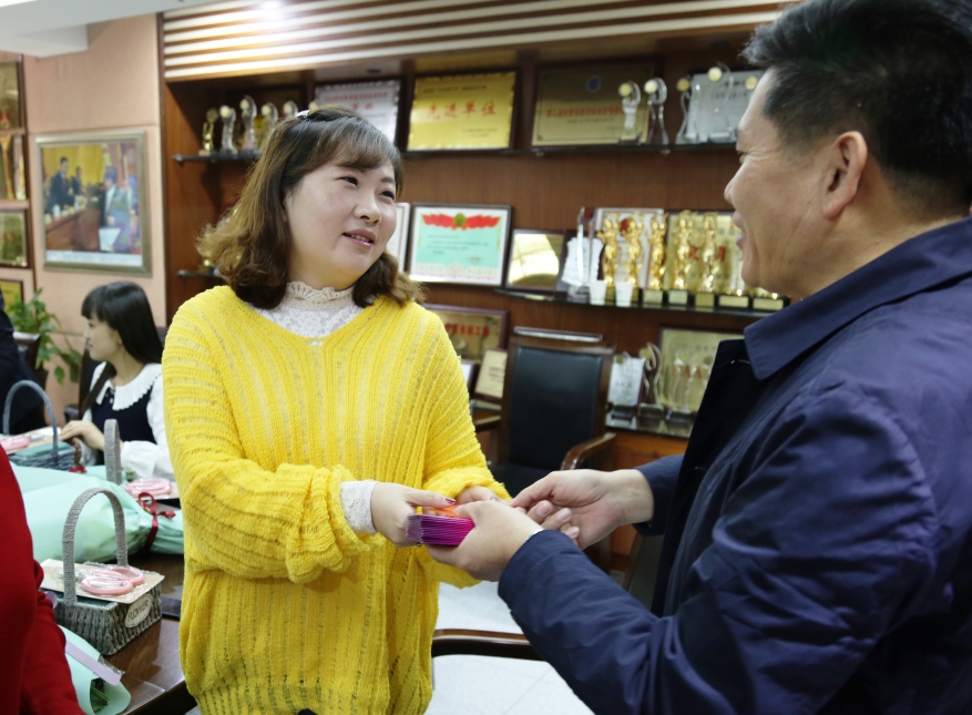 受胡秉军总裁委托,陈平副总裁为“女神”们送上节日福利