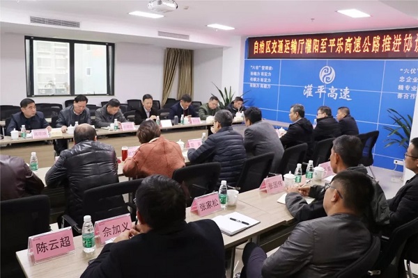 12月19日,广西壮族自治区交通运输厅副厅长王劼耘在桂林市政府副秘书长郑文宝、市交通局、高建办,恭城县、广西新平高速公路有限公司(以下简称“新平公司”)等单位领导的陪同下,深入灌阳至平乐高速公路(以下简称“灌平高速”)项目视察建设情况,并在新平公司召开了项目建设协调推进会。