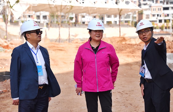 ▲ 杨虹(中)对楚雄民中项目的建设工作表示肯定