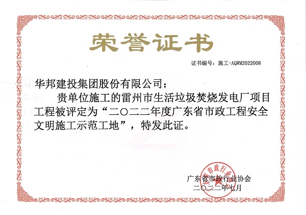 称号。此次获评是对雷州电厂安全管理、文明施工的肯定,也是对华邦建投建设能力的充分赞扬。