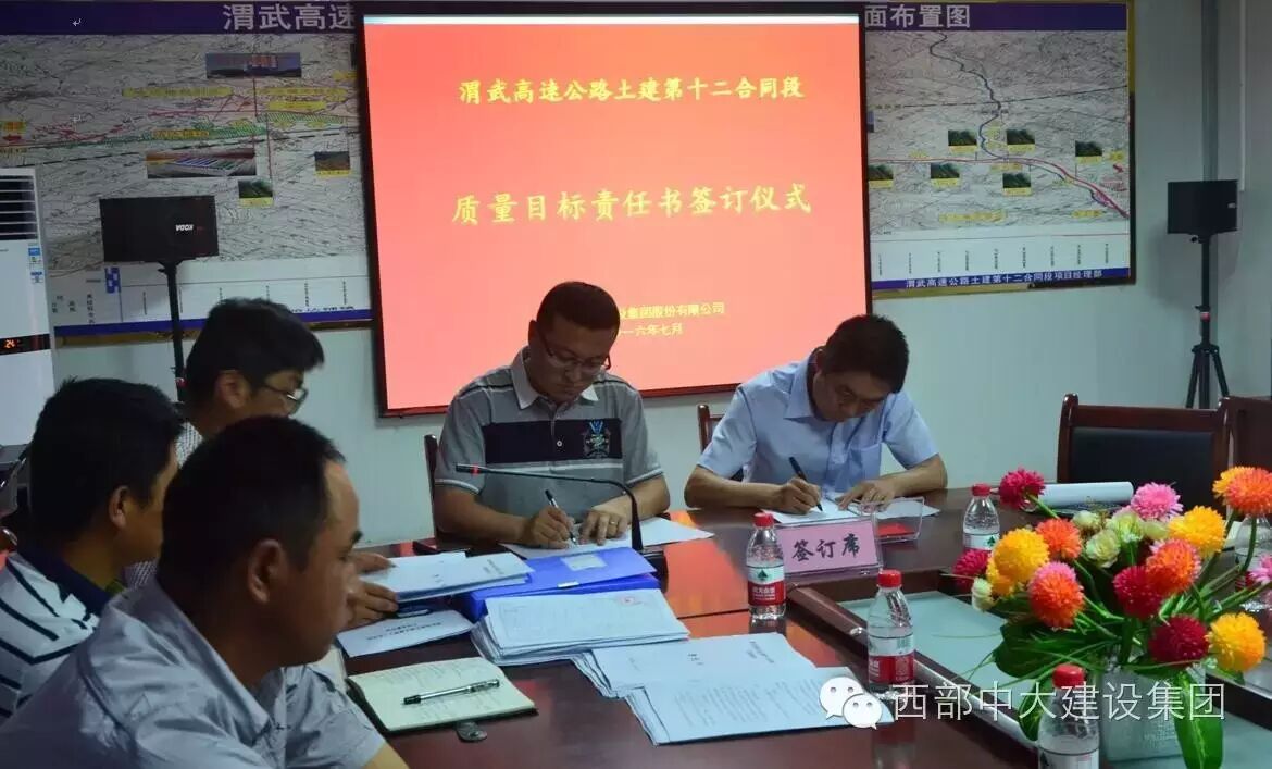 最后,会议举行了“渭武高速公路12标质量目标责任书签订仪式”,进一步明确了质量管理职责和质量管理架构,为接下来项目整体质量管理工作的提升打下了坚实基础。