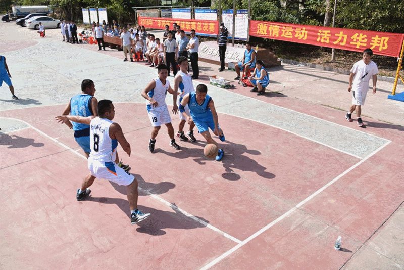 广西,梧州,梧环总包(梧州环城高速项目№2总承包部)球场前,人声鼎沸,“硝烟”骤起,一场篮球赛盛典正悄然拉开帷幕。